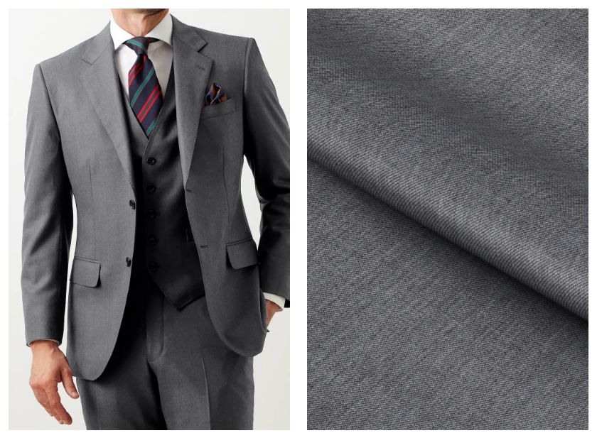ウール100%のスーパー100’sと細番手ですので、生地がしなやかで適度な光沢感も有り人気のシリーズです。