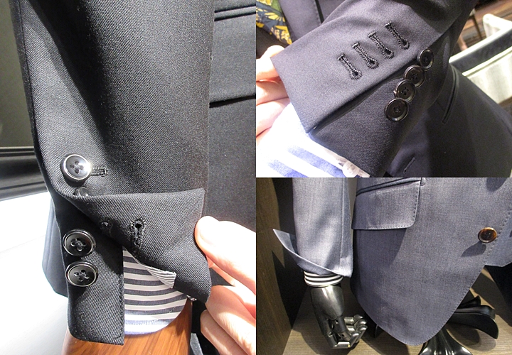 本切羽とは、袖の釦ホールと対になったボタンが付いており