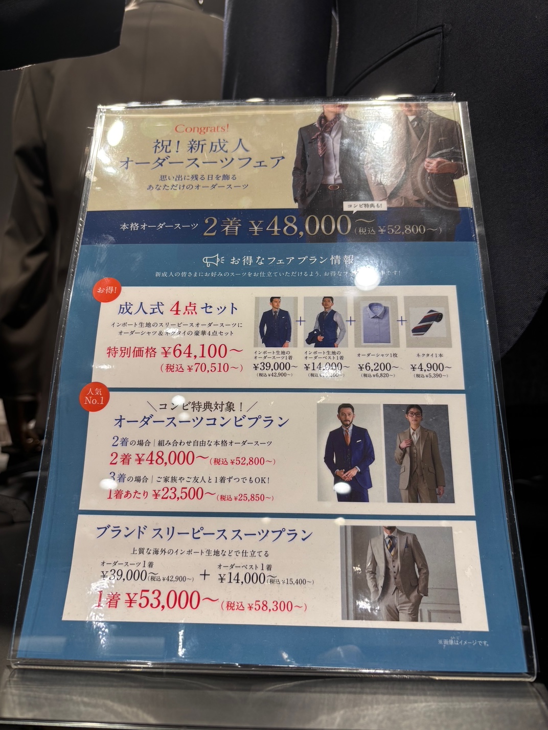 上記の組み合わせなら成人式スーツがお得に手に入りますので、