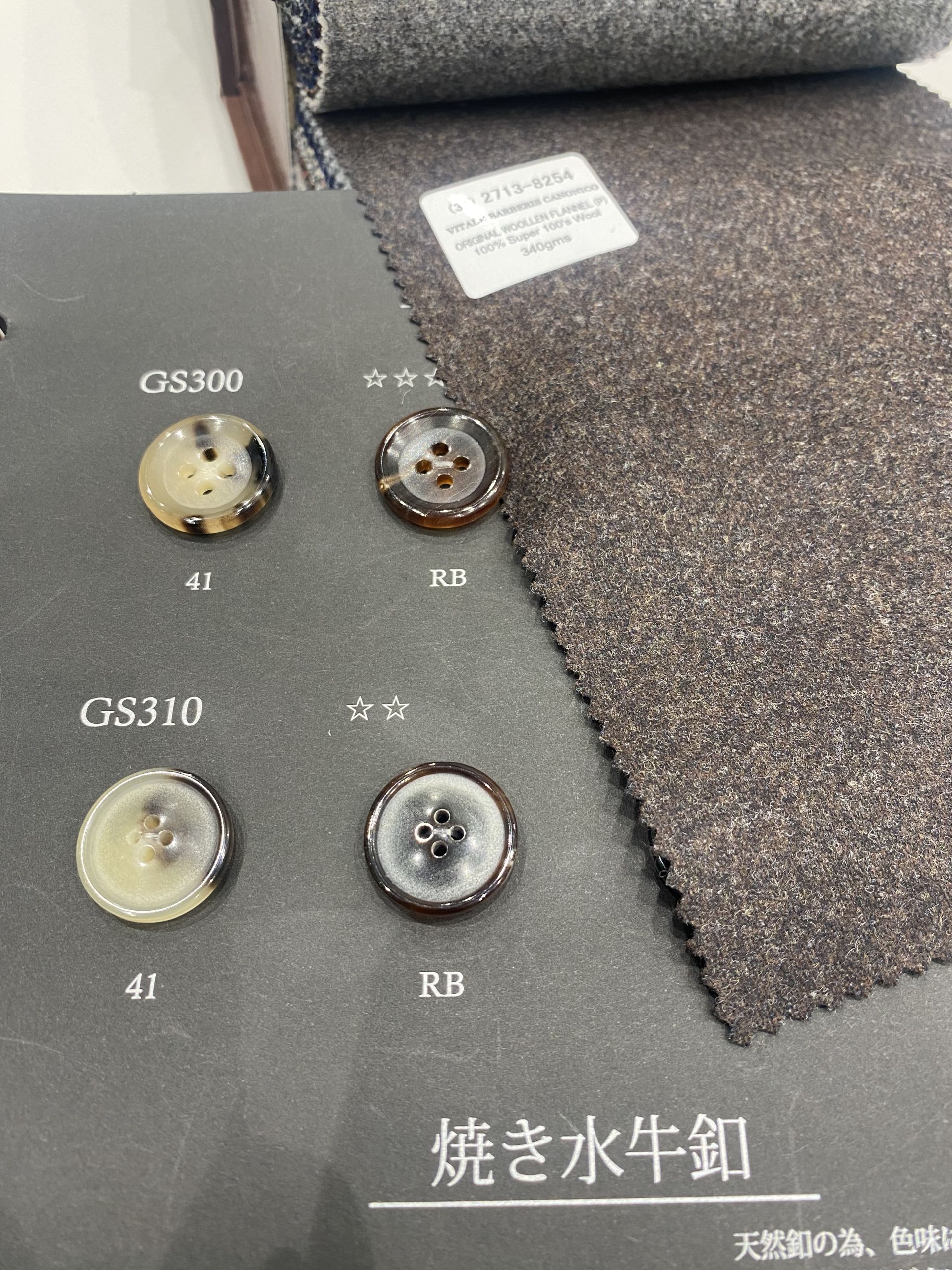 こちらはメタルのボタンでラフにしていますが、暗い色のボタンをあわせるともっとビジネス向きになります。