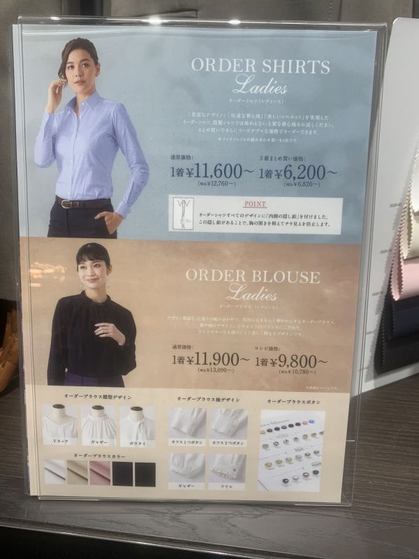 さて、今回はオーダーで作れるレディースのブラウスがついにKITTE大阪店でも展開されました!!!