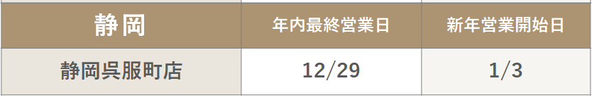 静岡呉服町店は、年末の営業は12/29まで、年始は1/3から営業します!!!!