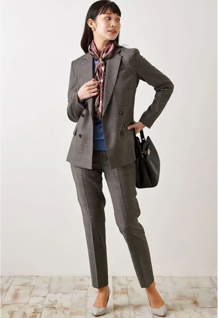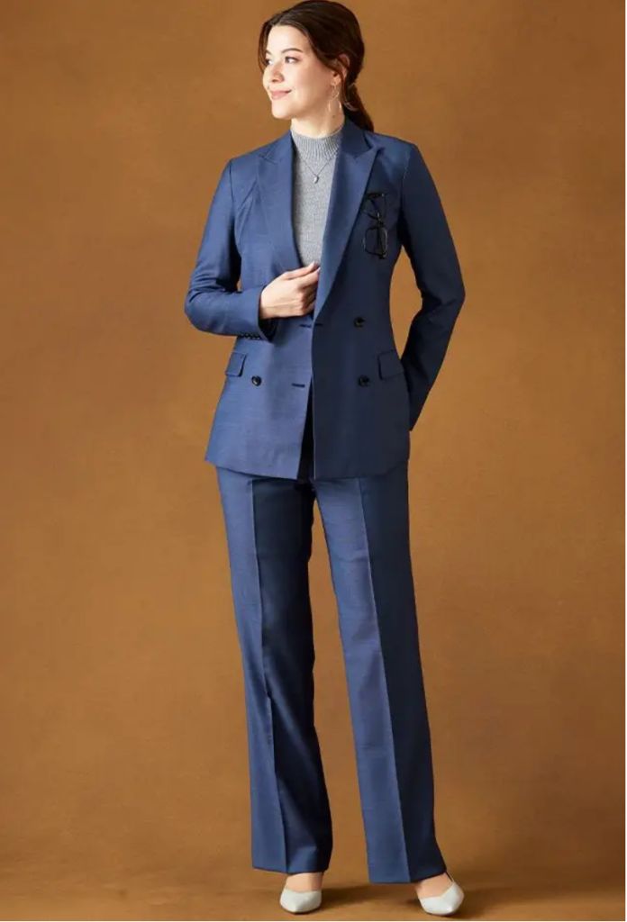 まずはスーツ。パンツスーツもスカートスーツも可能。ジャケットは襟付き襟なし、クルーネック、ダブルブレストも選択可能です。