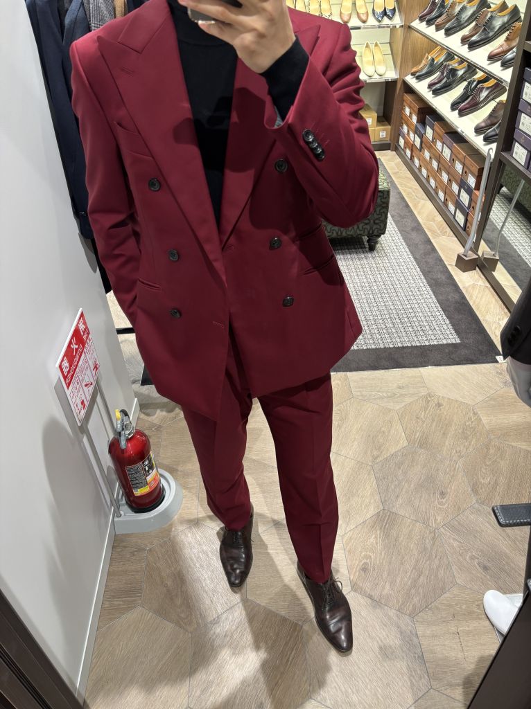 本日は久しぶりに赤いスーツを着て出勤しております。