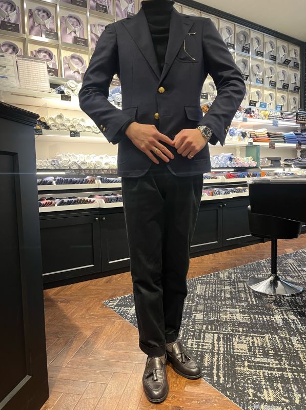 クリスマスはゴールドボタンのジャケットでおしゃれに楽しみましょう!