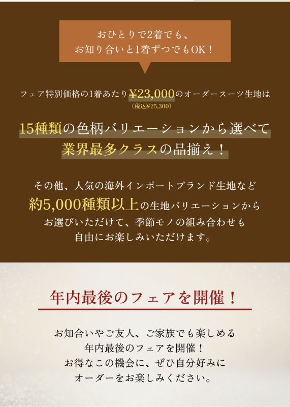 オーダースーツが通常1着 ¥38,000~ お仕立ていただけますが