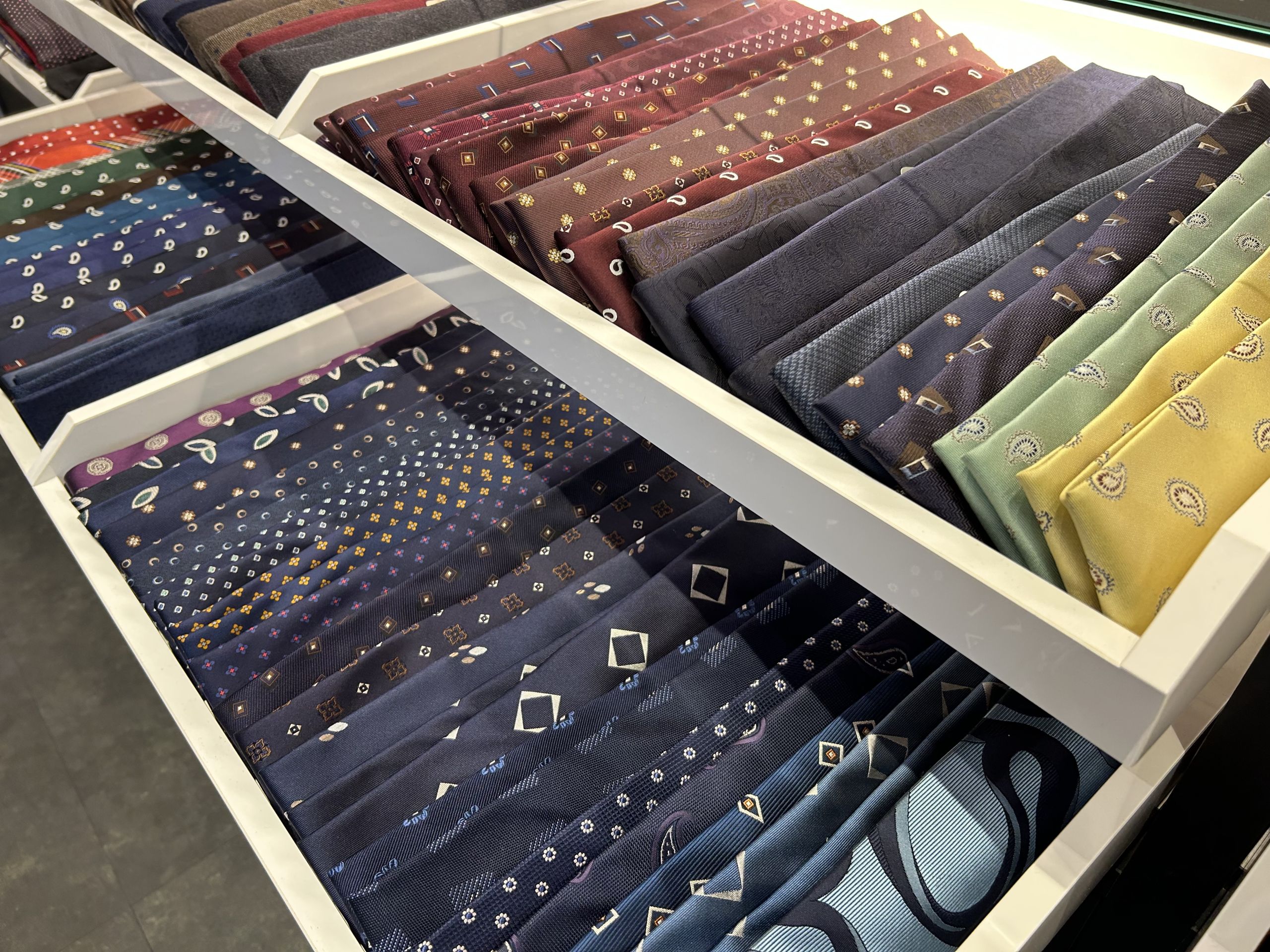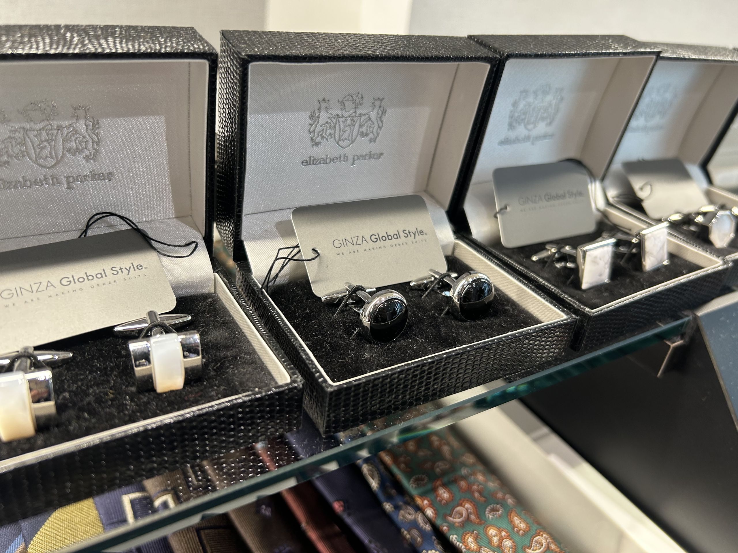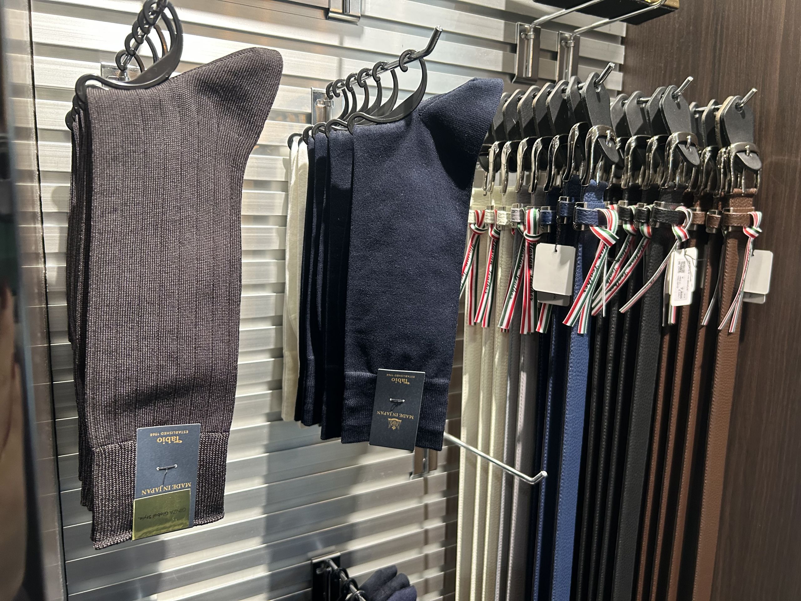 ネクタイやチーフ、カフリンクス、ソックス、ベルトなど常時置いてあるものから、