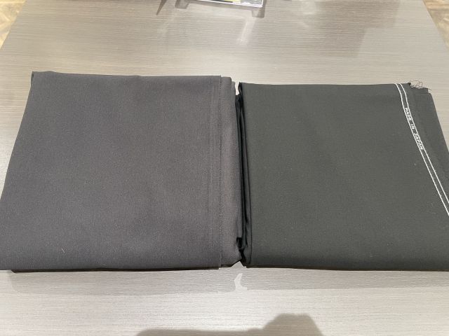 コンビ価格48,000円(税込み¥52,800)の生地はウール100% 写真右