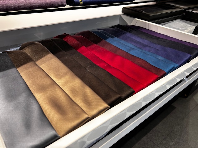 ストライプや小紋もそうですが、ソリッドタイも多彩にございます。