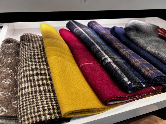 スーツ・シャツ・ネクタイの柄が多い場合は無地のマフラーの方が合わせやすいかと思います。