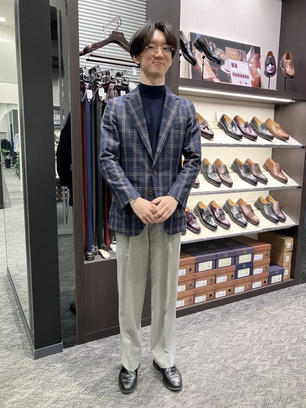 ジャケットモデルは着心地の軽いアンコンモデルを選び全体的に柔らかい雰囲気でまとまっております。