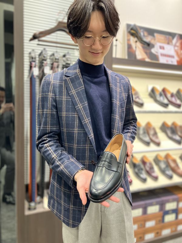 本日はお気に入りのバーウィックのコインローファーを合わせた点がこだわりのポイントです。