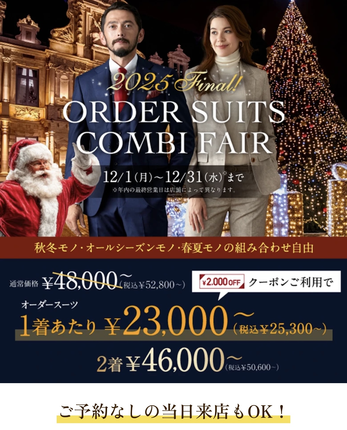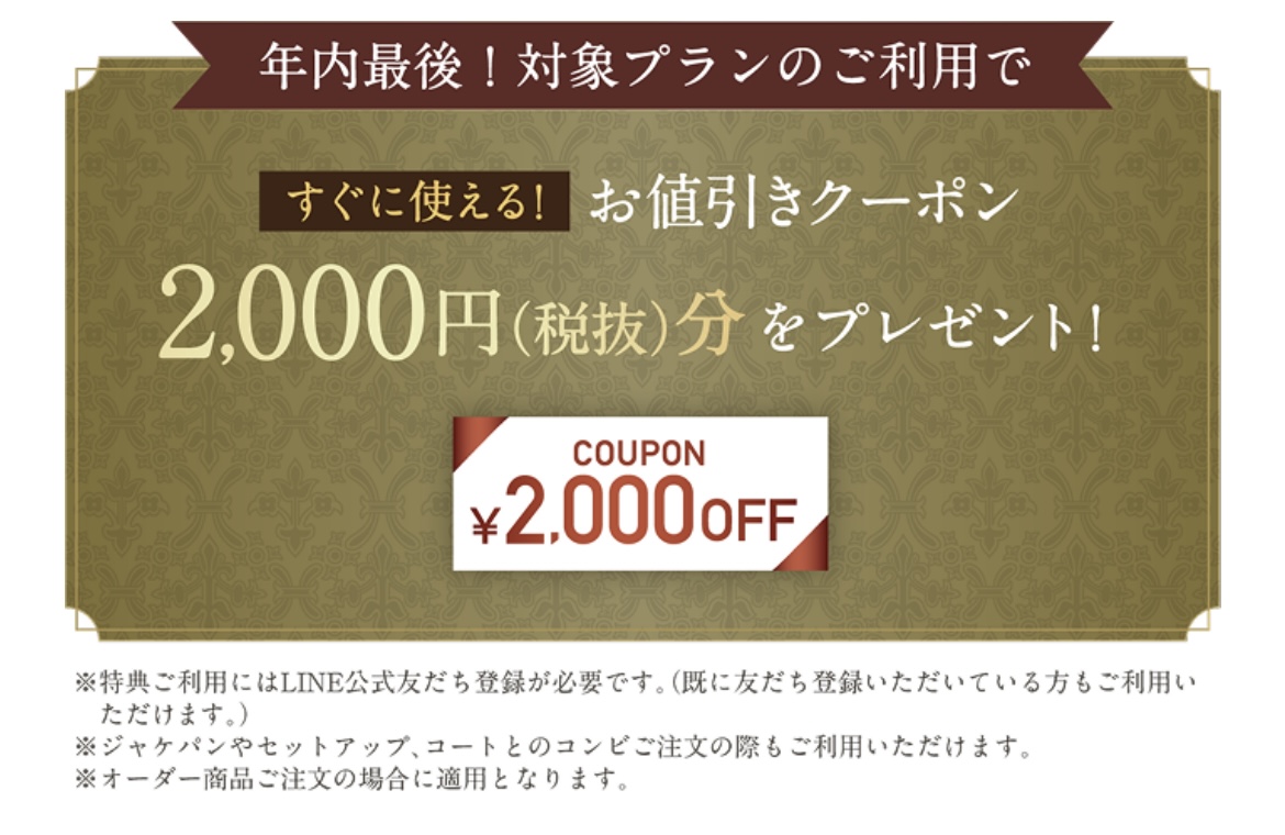 スーツ2着以上ご注文のお客様は総額から2000円お値引きさせていただきます。