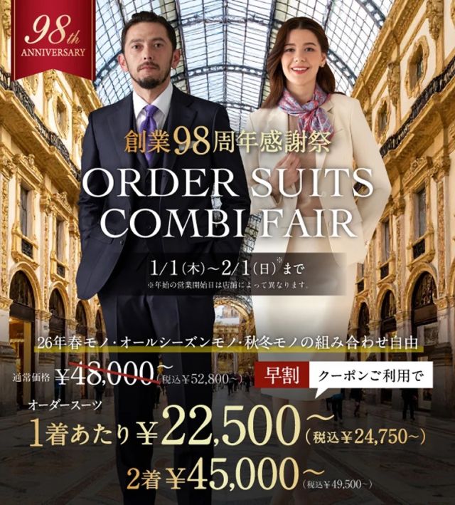 2着のお仕立てで3000円クーポンが利用可能に!!