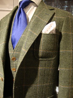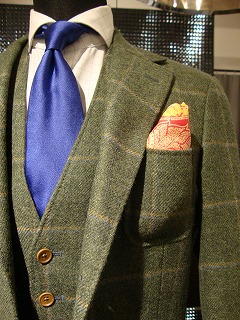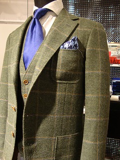 今年のトレンドのグリーンにチーフを合わせていきたいと思います。