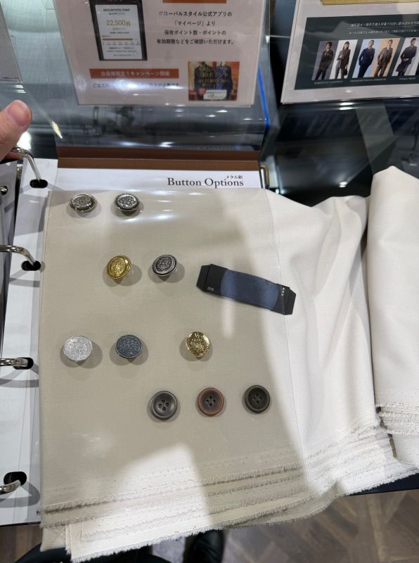 金ボタン良いなぁと思いましたが店のサンプル着ると似合わなさ過ぎてやめました