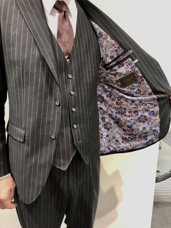 今回、表地は王道なチャコールグレーのストライプにしましたが