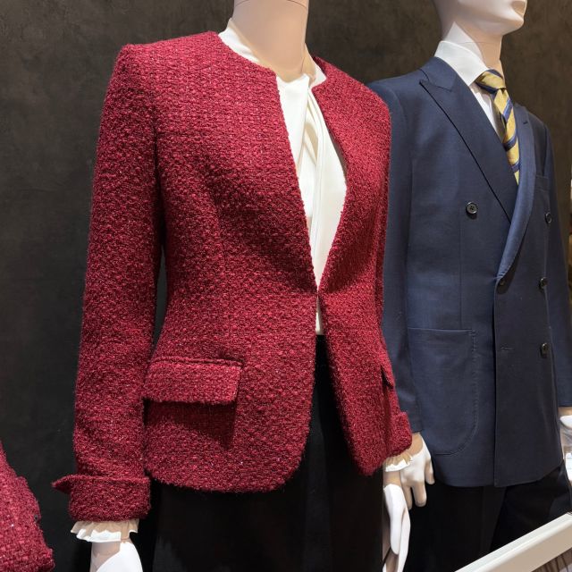 華やかなツイードジャケットや鮮やかな色味のセットアップスーツに