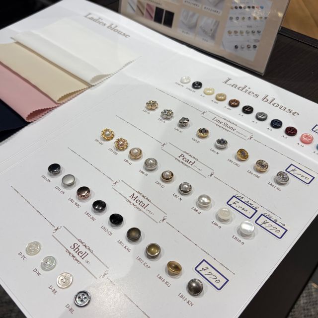 合わせるアクセサリーや小物に合わせて釦もお好みでお選びいただけます