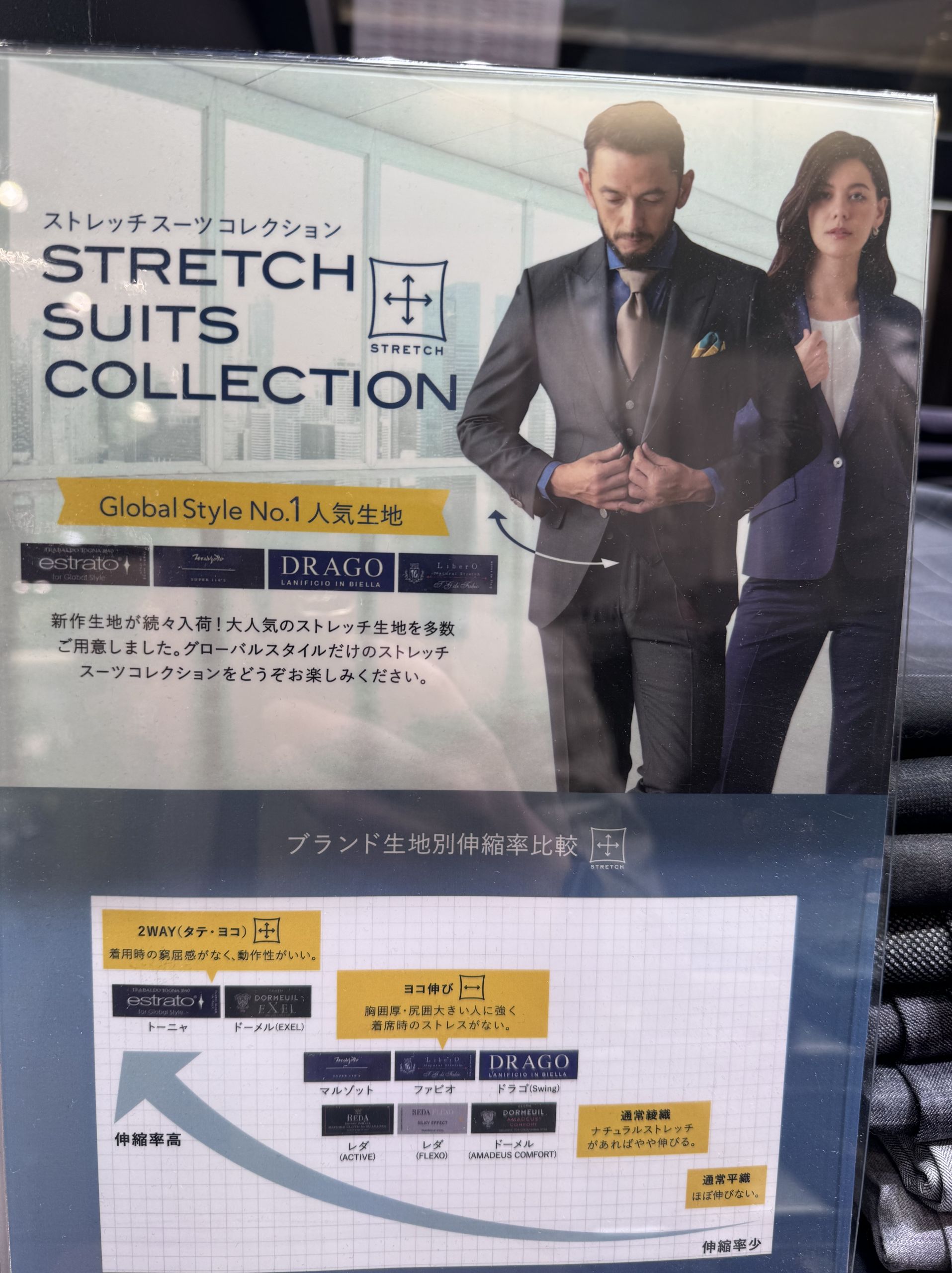 グローバルスタイルではストレッチ性の強い生地も豊富に取り扱っています