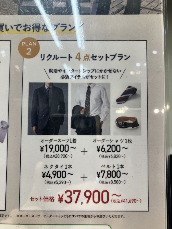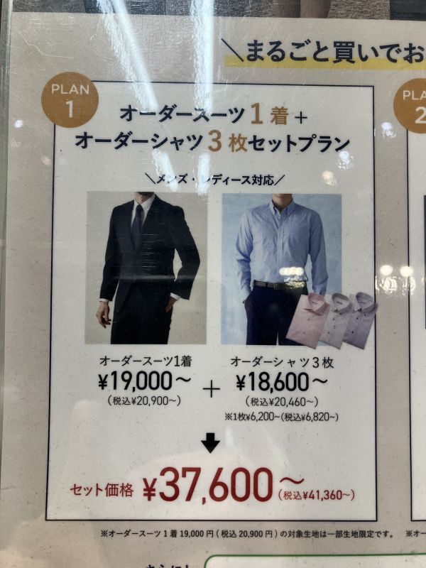 オーダースーツをまずは1着!というお客様にはこのようなプランもございます。