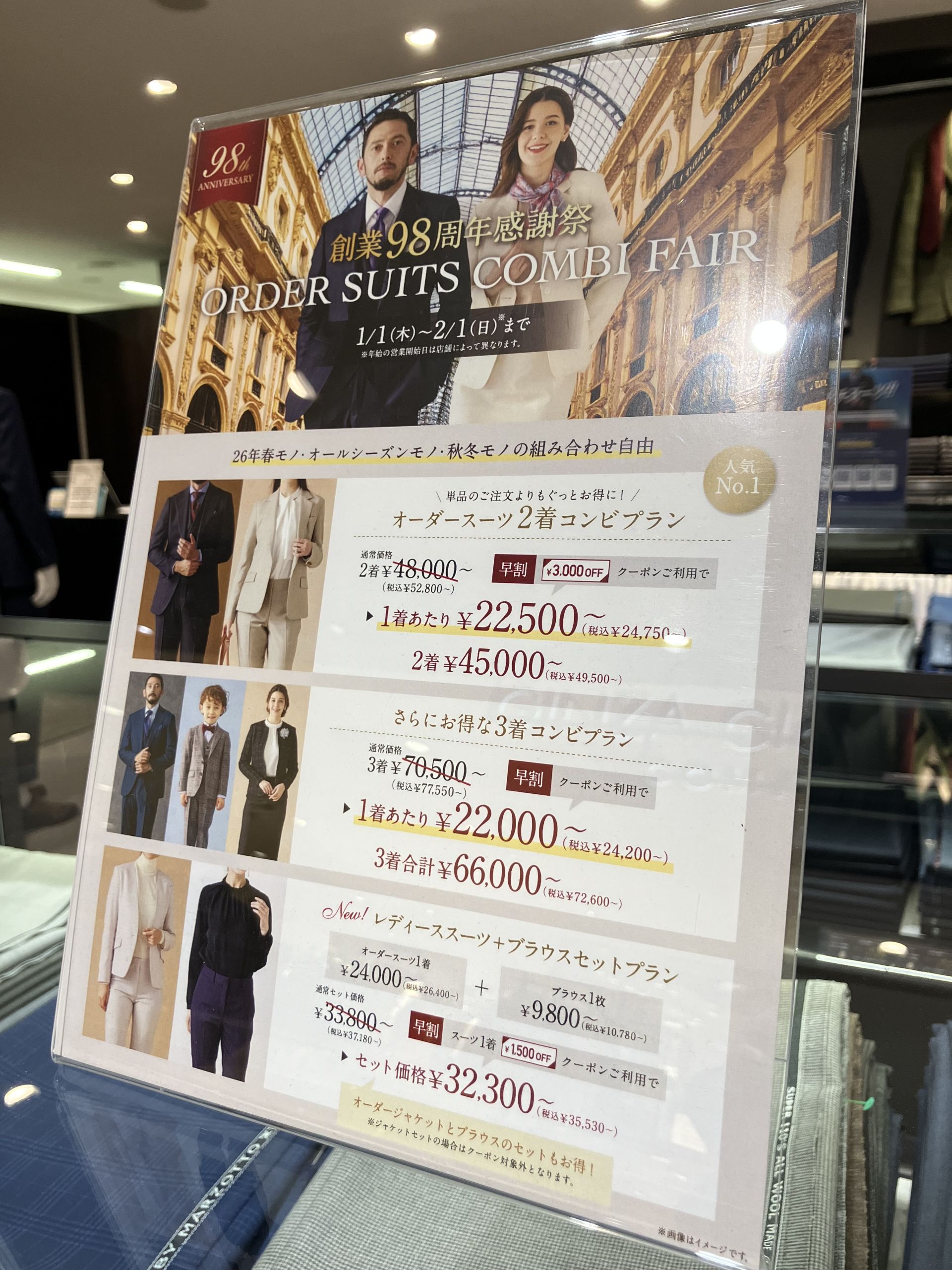 2着48,000(税抜)~ オーダースーツコンビフェア