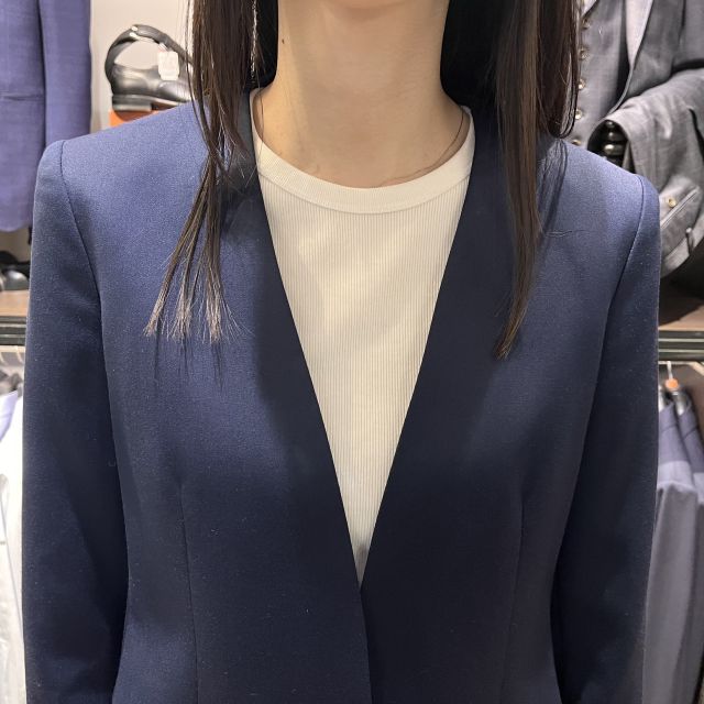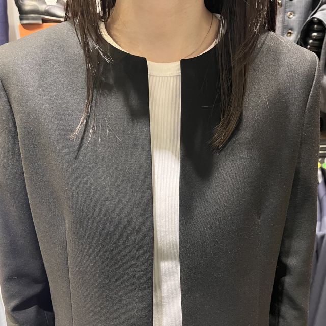 丸襟のほかにも、ノーカラージャケットもございますので、