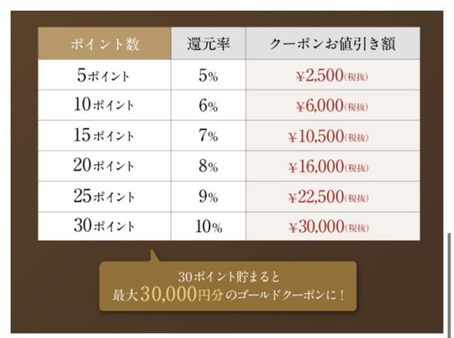 通常、お会計¥10,000ごとに1ポイントつくところ、