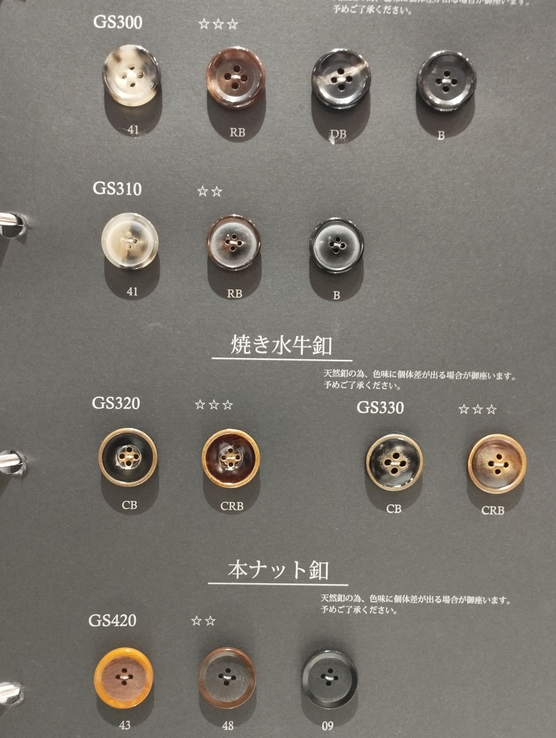 また、オーダースーツに人気の水牛釦やナット釦もございます。