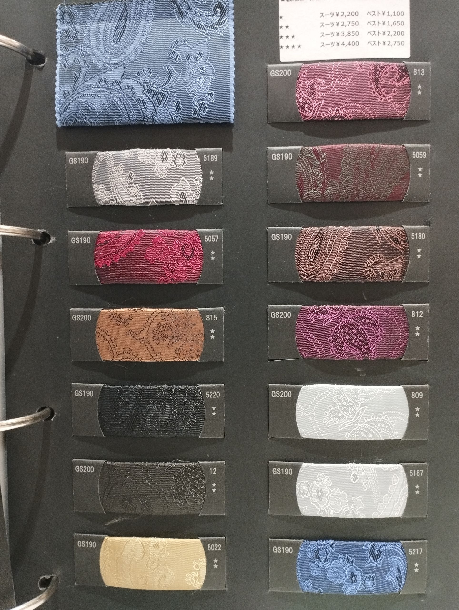 売り場に置いているものと、バンチブックといって生地の見本がブックになっているものから、