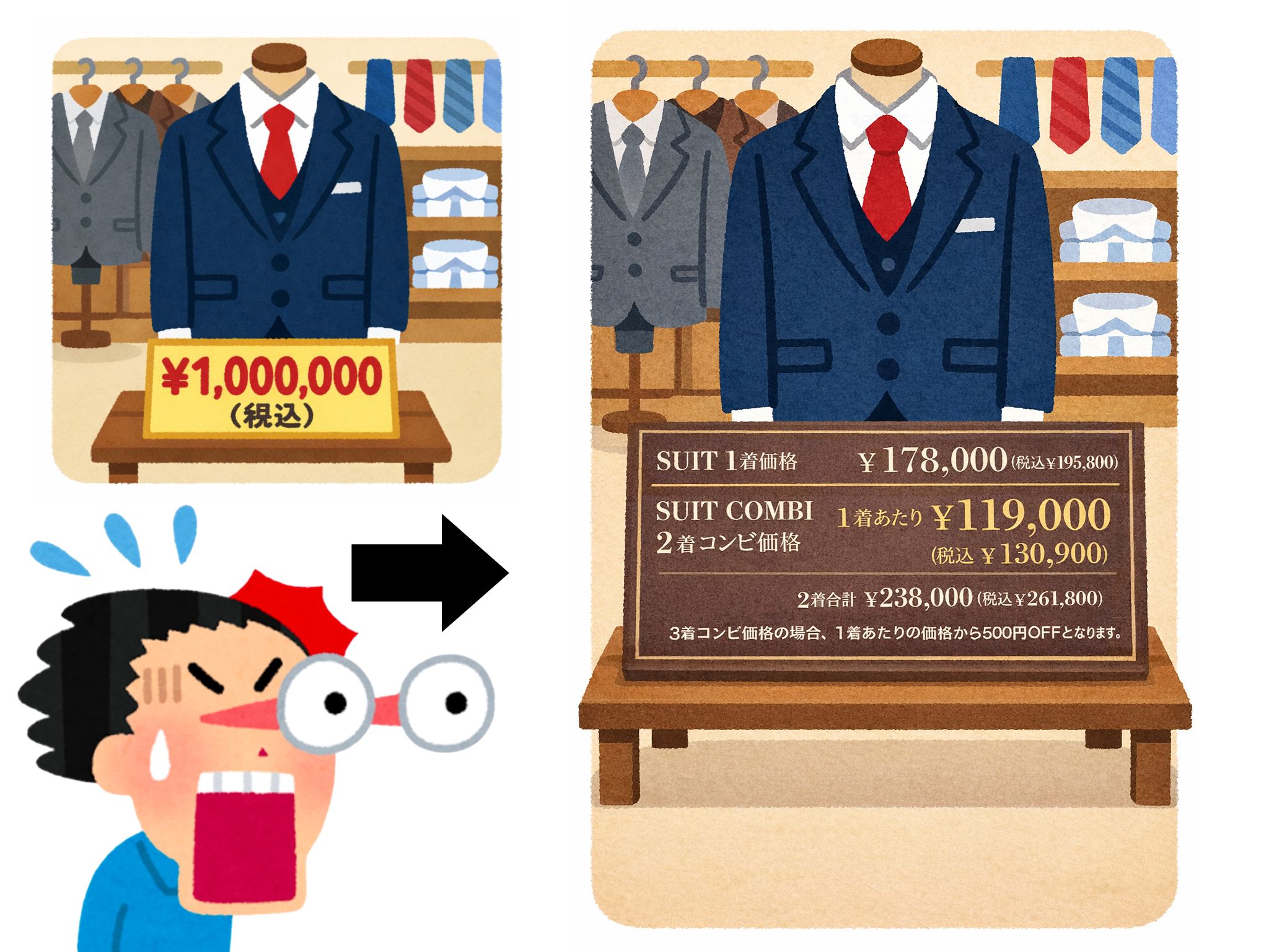 このスーツどちらも百貨店なんかで買うと60~70万、高いものだと平気で100万超えたりとか…
