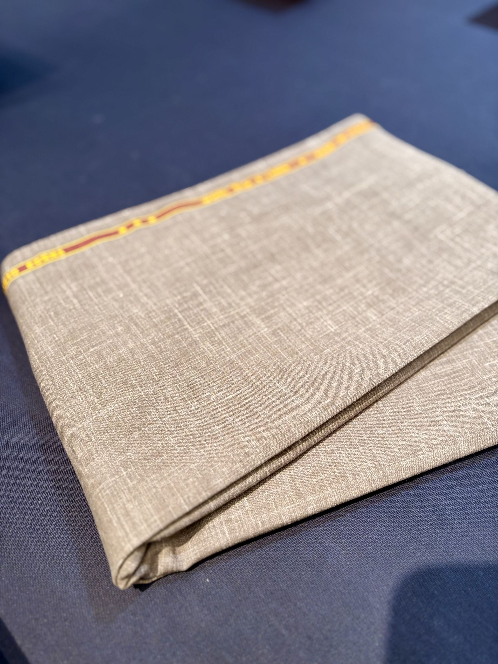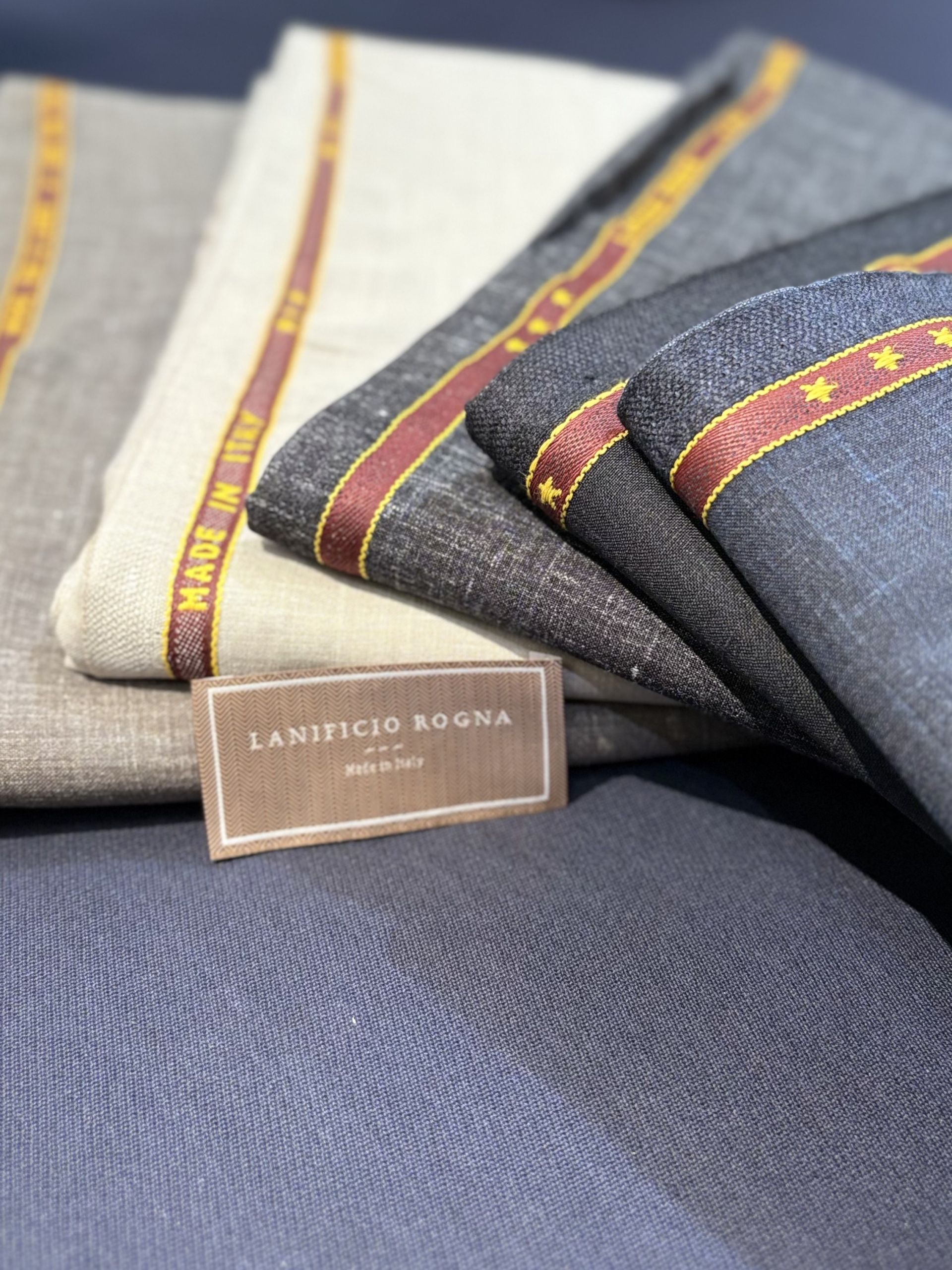 ウール55シルク25リネン20の混紡率で、平織なので通気性もよくこの夏にオヌヌメの一着となっております!