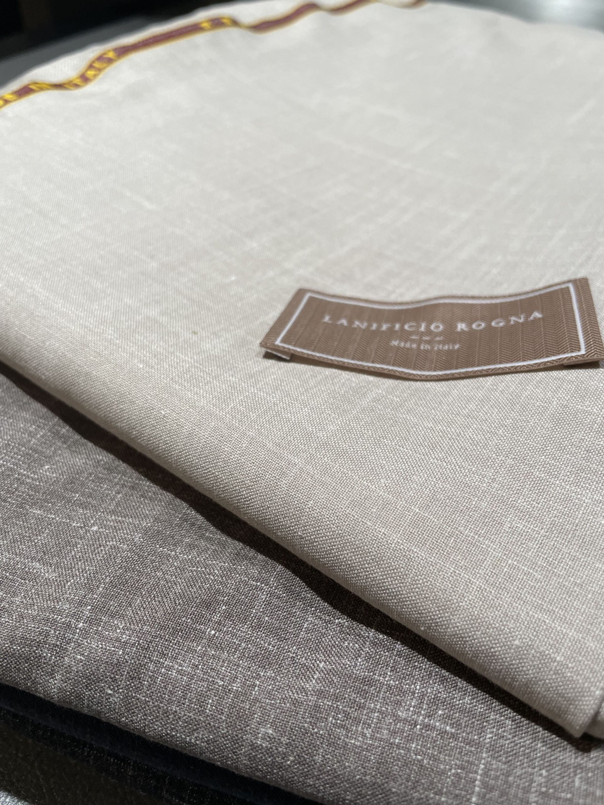 AWではモッチモチの4PLY生地でしたが、SSはウール・リネン・シルクの三者混トロピカル