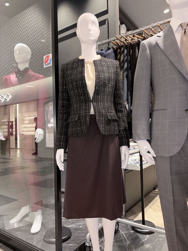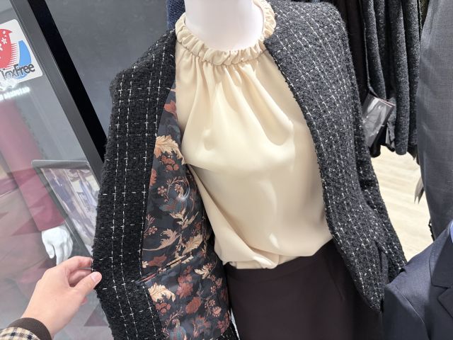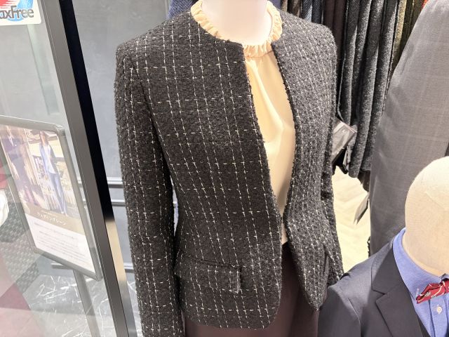 上品なツイード調の生地がエレガントな雰囲気を醸し出し