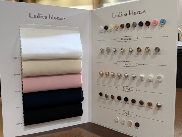 色の種類は5種類、釦は多くの種類の中からお選び頂けます。