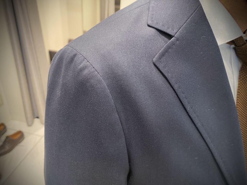 前肩補正が入っており、肩回りの当たりも解消されますので、ストレスフリーな着心地となっております。