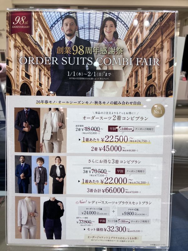 まとめてお仕立ていただく事でお得なコンビフェア適用、さらにラインクーポン適用で3,000円OFFになります。