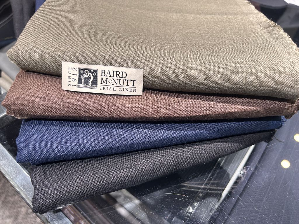 こちらはウール、シルク、リネンの混合生地ですのでやや薄く柔らかい生地感で春夏らしい明るいお色味がおおいですね。