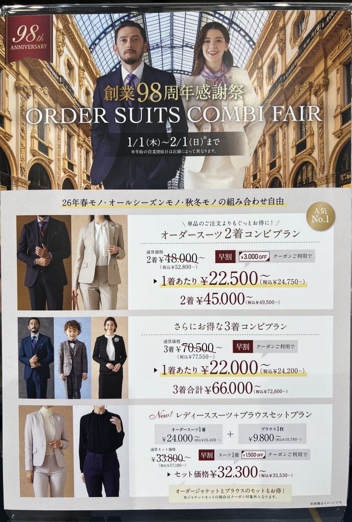 1月も残りわずがということは、今月の2着コンビフェアの特典も