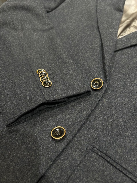 釦は焼き水牛で秋冬感を出してみました。(オプション¥3,300)