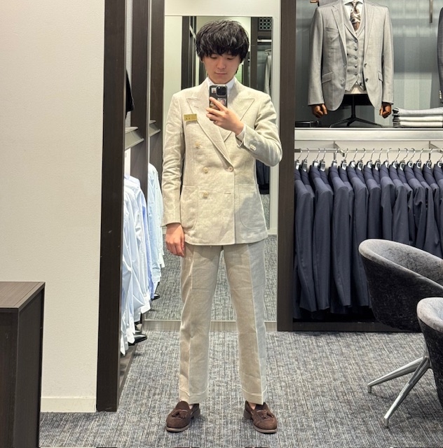 去年スペンスブライソンでリネンスーツを仕立てました。
