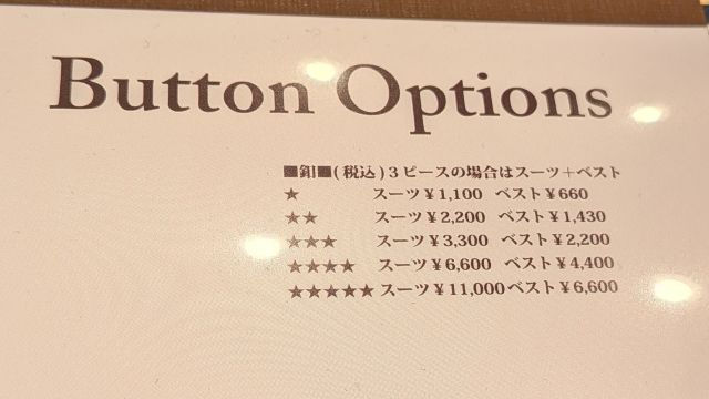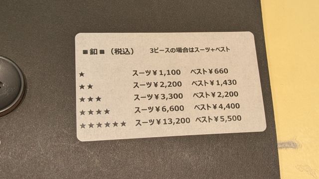スーツ¥1,100 ベスト¥660 でございます