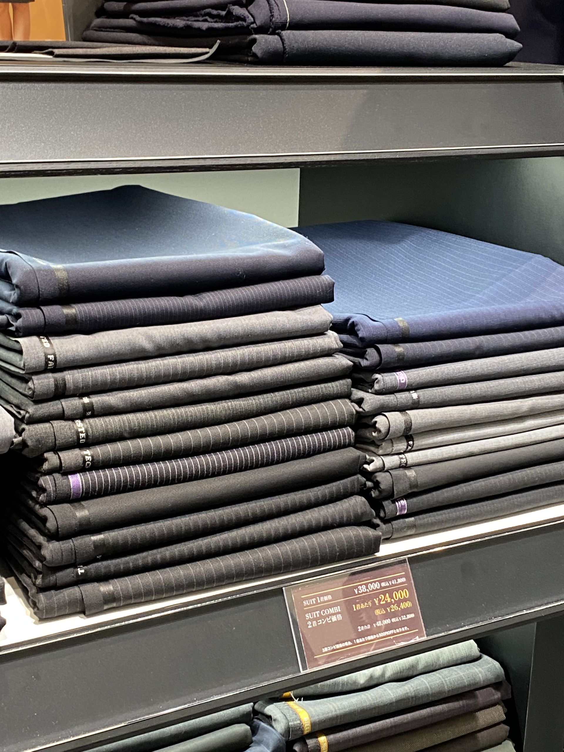 ちなみに1着が¥22,500(¥24,750 in tax)の生地はこちらからおえらびいただけます!