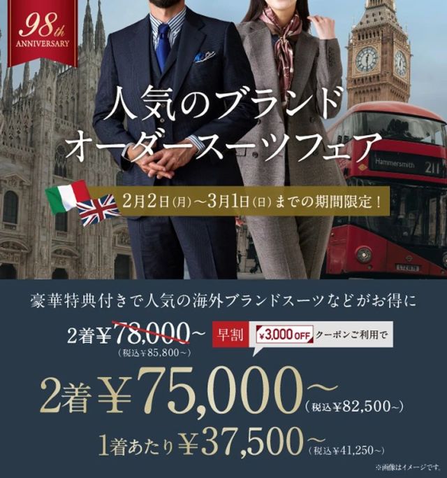 加えて今月も2着お仕立てで3000円引きのクーポンございますので是非期間中にご利用ください!!