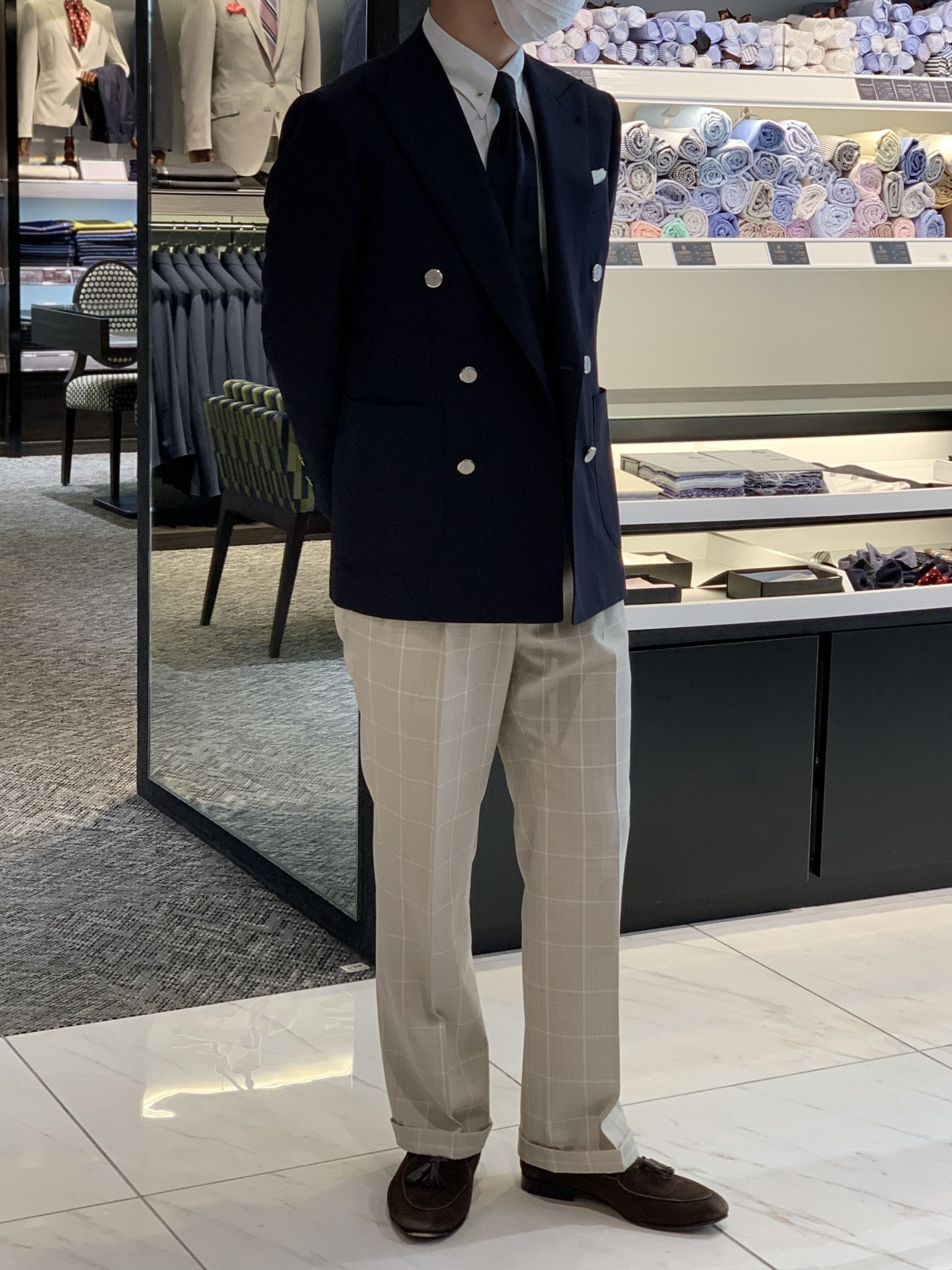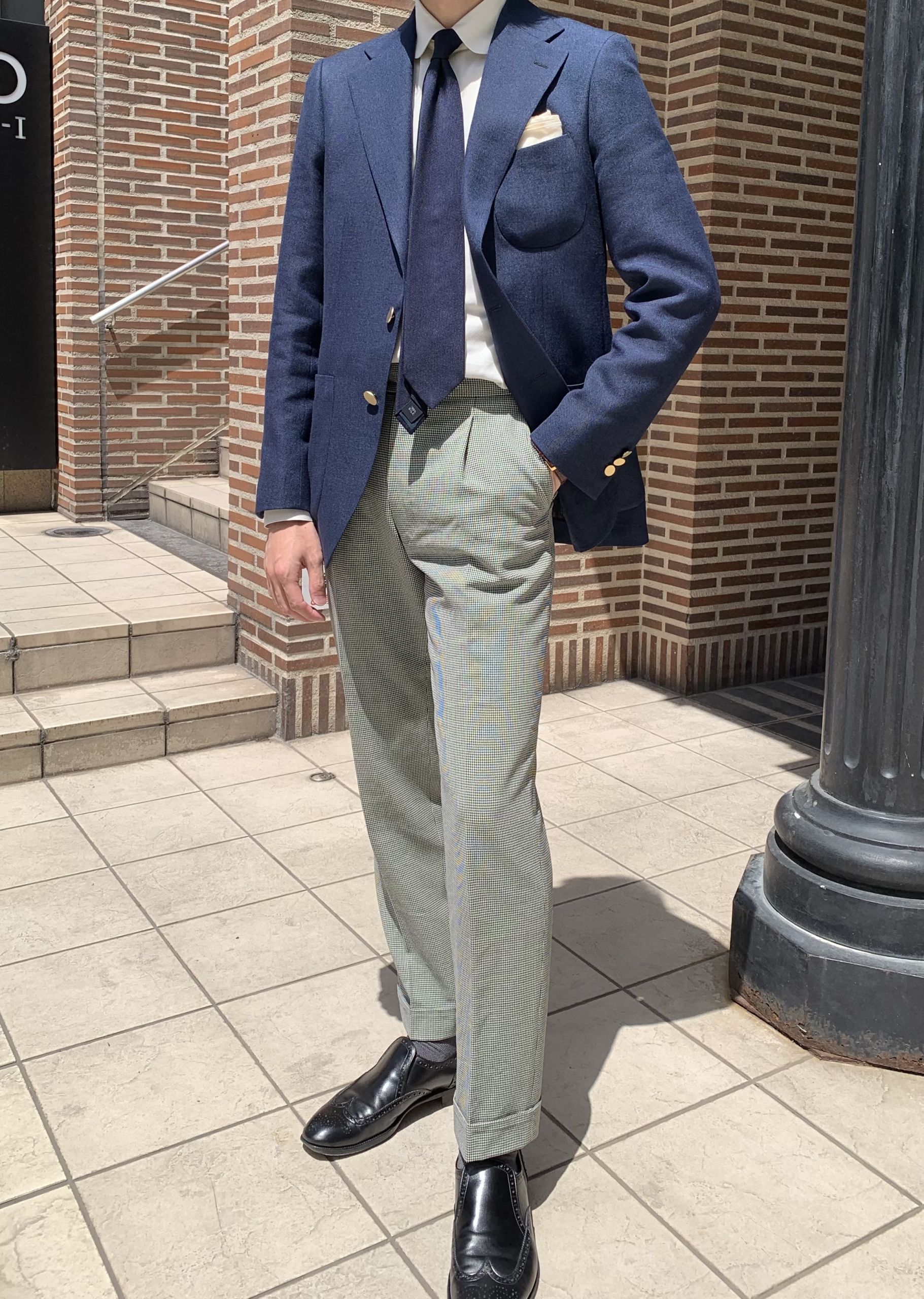 ・紺ブレ×ハウンドトゥース