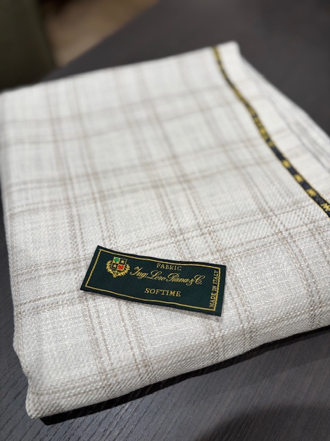 ジャケット生地はホワイトのベージュチェック。