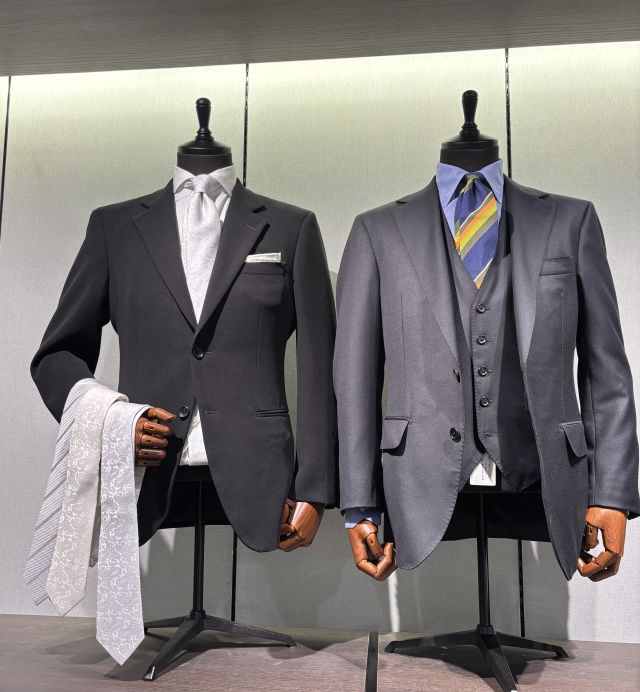 ございますが、ビジネススーツと礼服のコンビも非常に人気です。