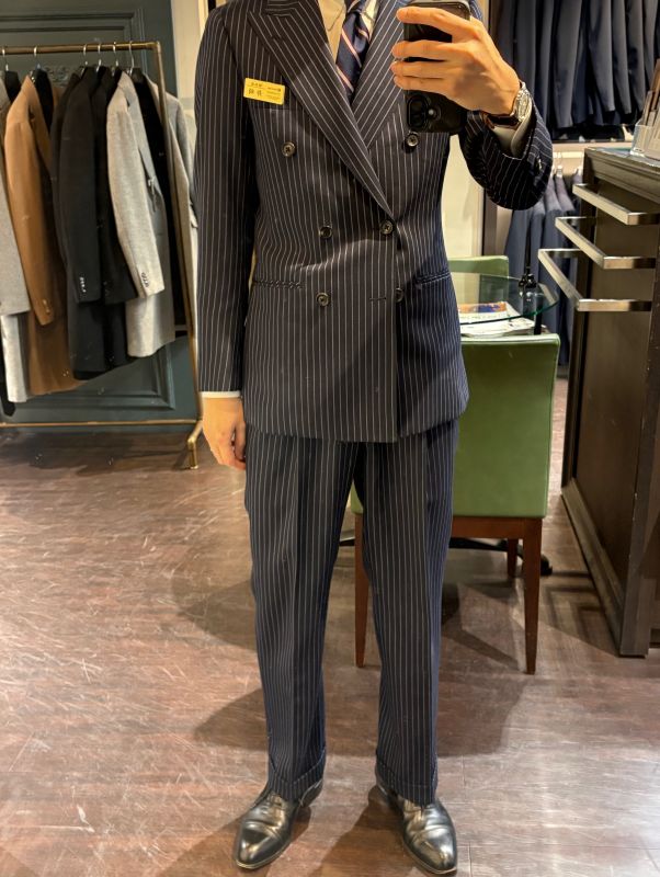 こちら、ネイビーストライプのダブルスーツです!