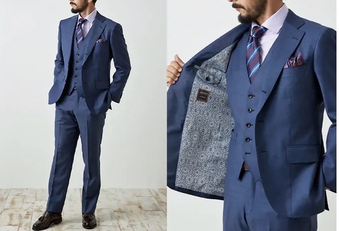⚫︎極上の光沢としなやかさ: イタリアのビエラ地方で紡績から一貫生産され、当社で扱っている最新の生地にはスーパー130以上の極細原毛による艶やかな発色としなやかさを持っています。