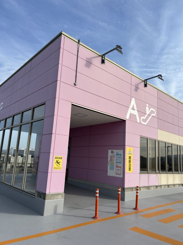立体駐車場でピンクのエリアを見つけていただけるとこんなに簡単に早くお店に来ることができるんです!
